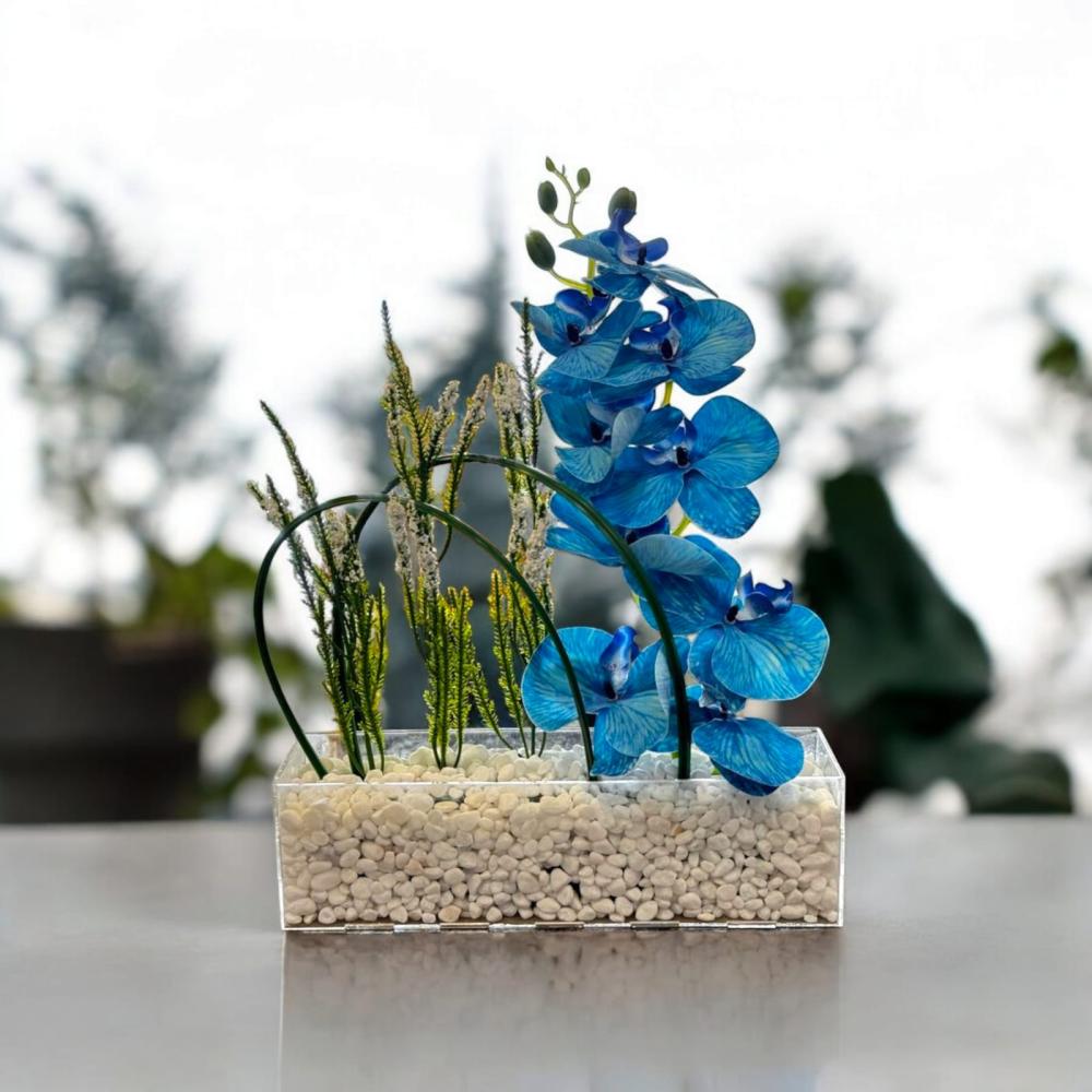 قاعده اكرلك بتنسيق من ورد الأوركيد الصناعي المشابه لملمس وشكل الطبيعي